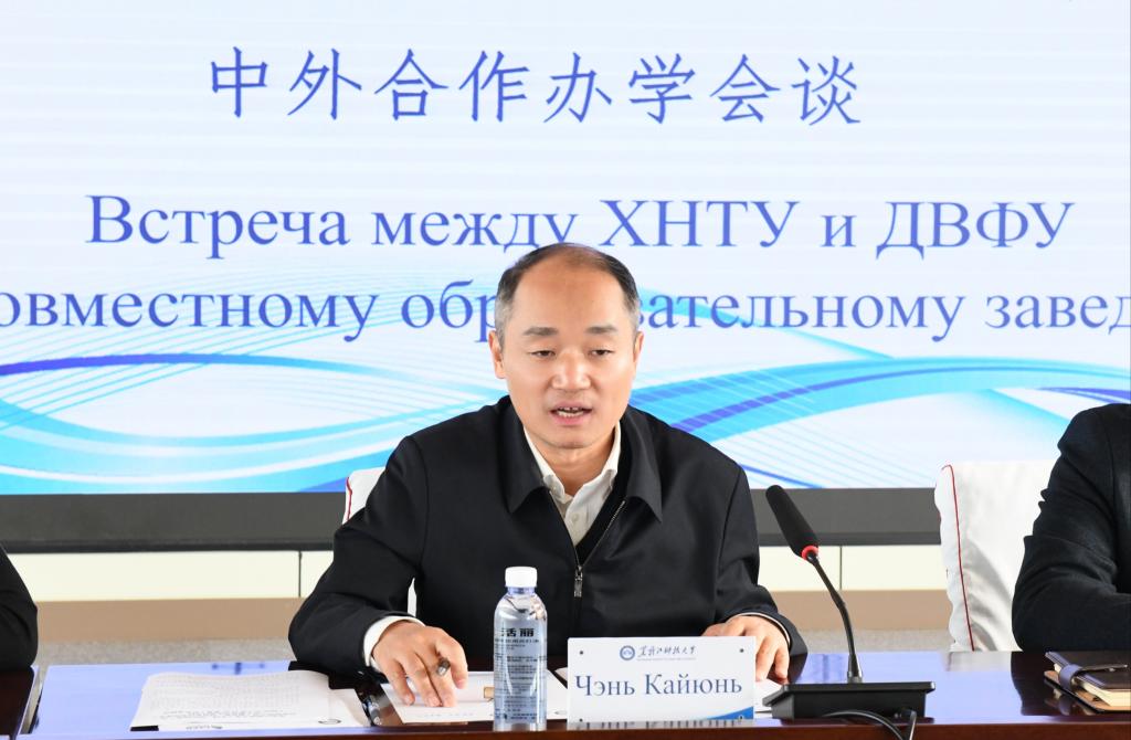 10月31日上午,副校长陈凯云会见了俄罗斯远东联邦大学副校长斯米尔诺夫,对斯米尔诺夫副校长来校访问表示热烈欢迎,高度评价了过去26年双方在教育领域开展的卓有成效的合作,特别是为社会培养了大批具备专业知识和国际视野的复合型人才,此合作办学项目已成为中俄教育合作的品牌。他表示,在项目良好运行的基础上提档升级,进一步在两校优势和特色学科举办中外合作办学机构,将推动两校在人才培养、师资建设、学术交流、联合科研方面的深度合作。