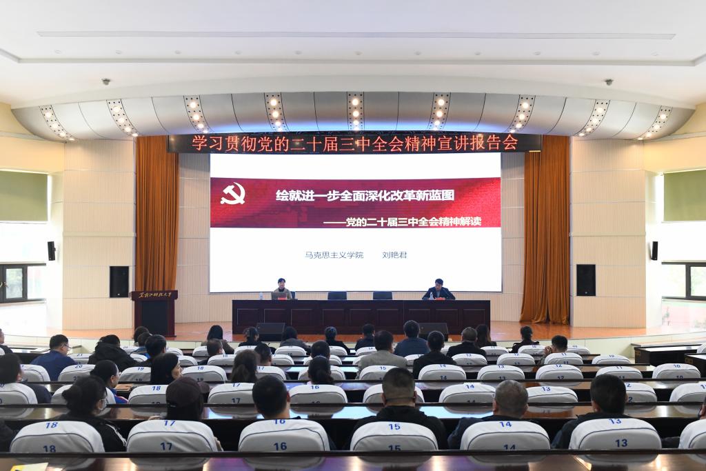 编者按:为深入学习宣传贯彻党的二十届三中全会精神,教育引导全校师生深刻领悟党的二十届三中全会精神的核心要义、精神实质和实践要求,切实把思想和行动统一到全会精神上来,自10月上旬开始,学校理论宣讲团成员围绕党的二十届三中全会精神和全国教育大会精神,在全校各基层党组织开展了理论宣讲活动,推动党的二十届三中全会精神和全国教育大会精神走深走实、落地生根。