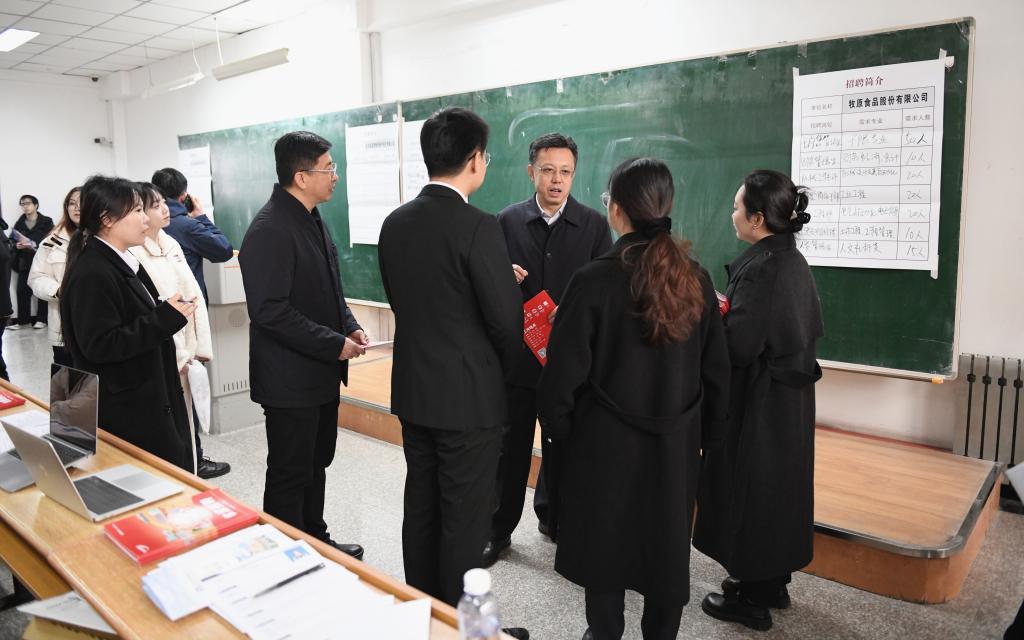 11月9日,学校“追梦乐鱼网站_乐鱼(中国),‘职’为你来—2025届毕业生秋季大型供需双选会”在科技大厦成功举办。此次双选会共吸引近200家企事业单位入校招聘,提供就业岗位10203个,4000余名毕业生到会应聘,校党委书记周宏力、校党委副书记桑玉军深入招聘现场了解企业岗位需求、学生应聘情况,与用人单位代表交流洽谈。