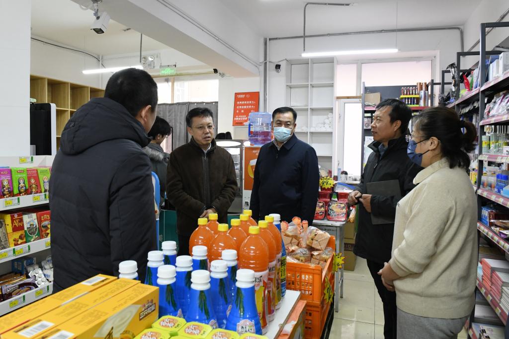 周宏力一行还实地检查了校内超市,详细了解了超市进货渠道、临期食物处理、售卖价格等情况。