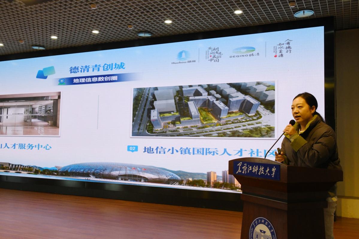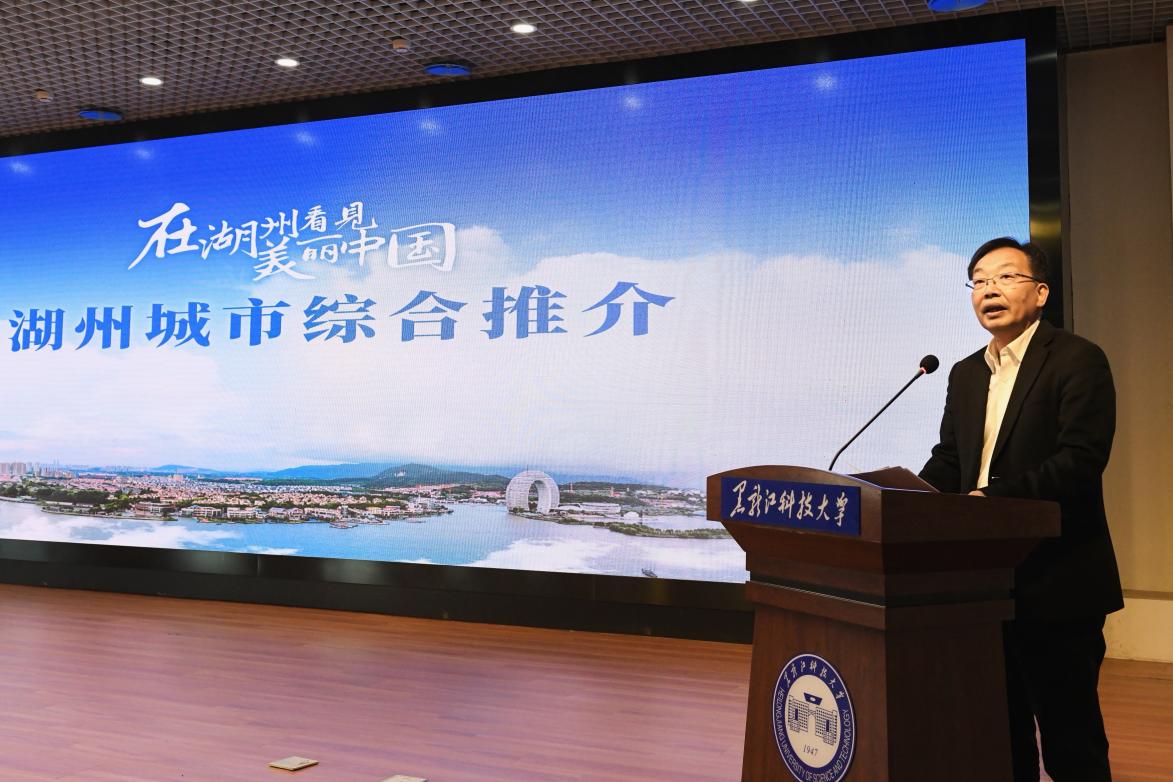 夏坚定作湖州市城市推介,介绍了湖州的区位优势、市情市貌、产业发展、园区建设、就业环境等情况,诚挚欢迎乐鱼网站_乐鱼(中国)优秀学子能喜欢湖州、爱上湖州、扎根湖州;湖州市人力资源和社会保障局党组副书记、副局长胡培强作湖州“青创新城”建设及大学生就业创业政策和人才政策宣讲;湖州市企业代表“浙江先登绿能新材有限公司”“莫干山人才服务中心”分别作人才需求推介和青创项目需求推介。