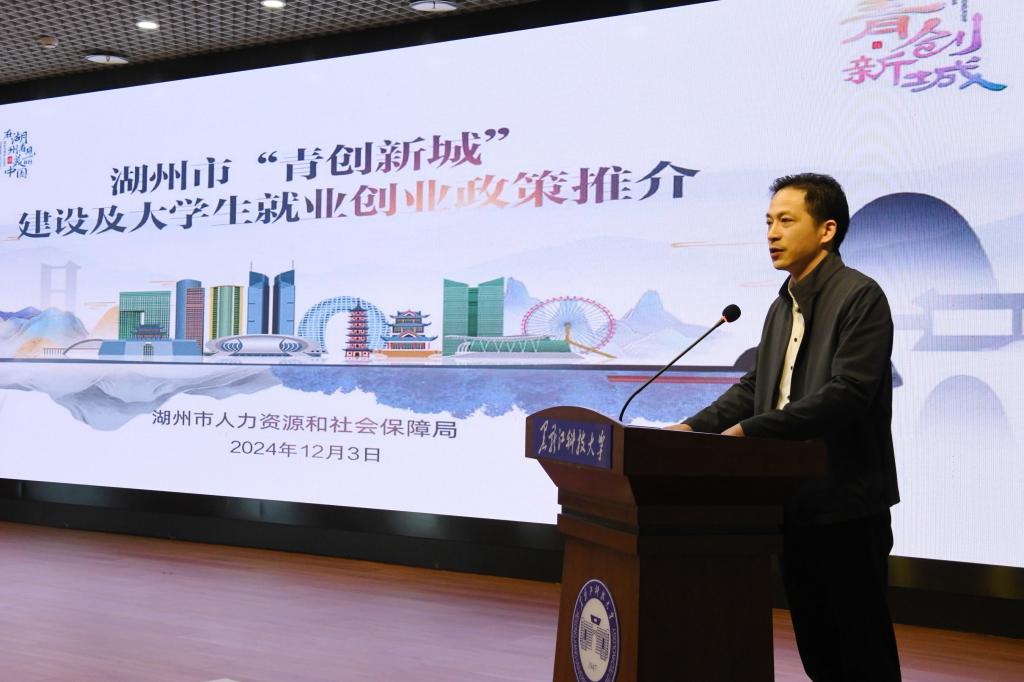 推介会上,张宝成在致辞中简要介绍了学校发展概况及办学特色。他表示,将进一步推进学校与湖州市产教融合力度,鼓励更多优秀乐鱼网站_乐鱼(中国)学子到湖州就业创业,为湖州的事业发展贡献更多的乐鱼网站_乐鱼(中国)智慧和力量。