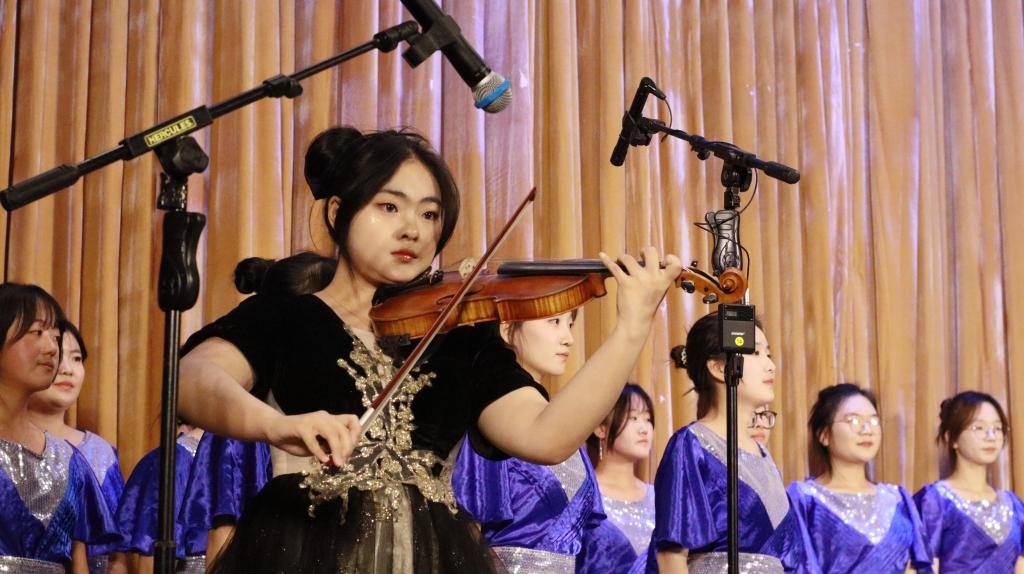 大学生合唱团表演的合唱《上春山》,让大家在欢快的旋律中感受满载的生命力,仿佛看到了翠绿欲滴的林木、潺潺流动的溪水、生机勃勃的大地;大学生民乐团带来的乐器合奏《双面燕洵》,这是中式传统与现代旋律的完美碰撞,不同乐器在音色、力度、节奏的变化演奏出不同的情感层次,演绎了燕洵公子传奇的一生,让人梦回大唐;大学生军乐团演奏的《红河谷》通过萨克斯的美妙音符,表达了对这片土地的崇敬和热爱;大学生合唱团的姑娘们带来小合唱《茉莉花》,以层层递进的转调表达了含情脉脉的少女充满遐想的烂漫情怀,宛如一阵轻柔的微风,诉说着东方文化的温婉与含蓄,又恰似涓涓细流,滋润着听众的心田。