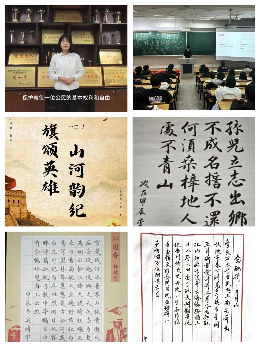 理论宣讲守初心,笔墨铸魂悟思想。电气学院团委、材料学院团委、人文学院团委、研究生学院团委,分别开展了纪念“一二·九”运动89周年青年学生理论宣讲、红色故事分享会、主题征文、书法大赛等活动,教育引导青年学生要传承红色基因、树立远大理想、练就过硬本领、讲好中国故事,努力成为堪当民族复兴重任的时代新人。