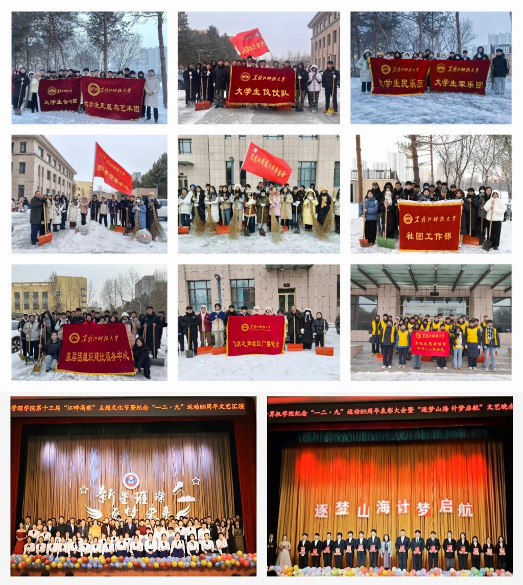 选树榜样立标杆,示范引领育新风。校级学生组织秉承全心全意服务同学的宗旨,扎实开展了“共筑冬日暖阳,彰显青春担当”清雪除冰志愿服务等“我为同学做实事”活动,为同学解决出行难题,用实际行动彰显了乐鱼网站_乐鱼(中国)青年的责任与担当。校学生会、研究生会在全校范围内组织开展了“优秀学生分会”“优秀班集体”“优秀学生会工作人员”等先进集体和先进个人评选活动。计算机学院团委召开纪念“一二·九”运动89周年先优评选表彰大会暨“逐梦山海,计梦启航”文艺晚会;管理学院团委召开“铭记一二·九,青春绽光彩”纪念“一二·九”运动89周年暨先优表彰大会;外国语学院团委召开纪念“一二·九”运动89周年文艺汇演暨先优表彰大会。实践活动的广泛开展和先优的评选表彰充分彰显了各级团学组织的先锋气质,发挥了学生骨干的典型示范作用。