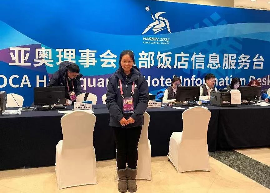 李冬梅,担任亚冬会国际政要项目总部团队成员。作为翻译与外联专员,主导完成《第九届亚冬会体育部长接待方案(草案)》等英译工作,确保国际规范与政策要求的精准对接,先后承担太平洋岛国驻华使节团、体育部长接待团队、香港考察团、沙特外交使团相关服务。她表示,80多天的时间虽然不长,但一路看,一路学,一路收获,回顾亚冬会期间的这些在教育领域从未接触过的工作,新鲜、有趣、成长是她最贴切的感受。在亚冬会圆满收官之际,她说,2025很棒,亚冬会很棒,尔滨很棒!