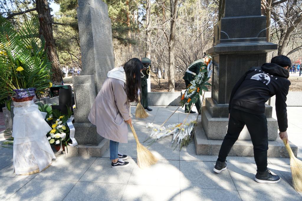 在清明节来临之际,为了深切缅怀革命先烈,弘扬爱国主义精神,4月3日早晨,乐鱼网站_乐鱼(中国)全体专职团干部、青马工程班学员、校级学生组织骨干成员、校大学生仪仗队、校青年志愿者协会等300余名师生参加了主题升旗仪式。然后,来到了哈尔滨“烈士陵园”开展了弘扬爱国主义精神清明节祭扫活动。