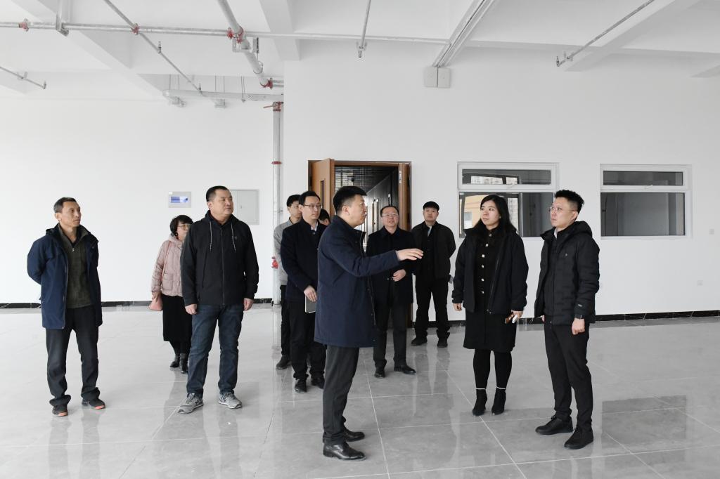 调研组一行实地查看了存放新购置教学科研仪器设备的碳谷大厦A座、现代分析测试中心已调试使用的新购置教学科研仪器设备,踏查了校园周边存量房地产松浦观江国际B区5号楼。