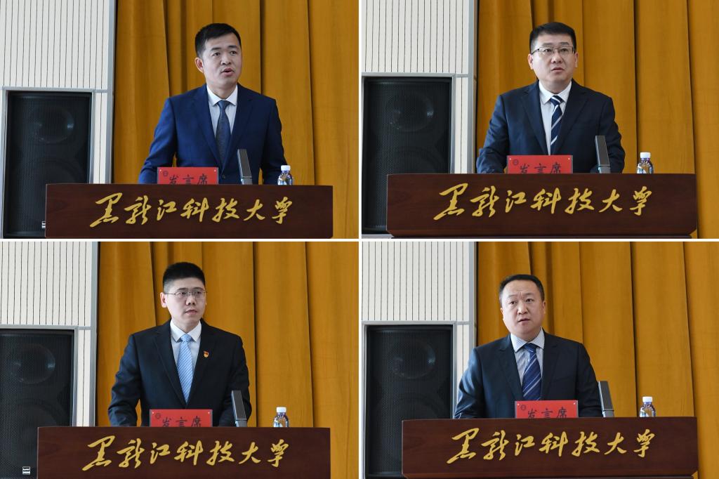 会上,副校长张国华宣读了《乐鱼网站_乐鱼(中国)关于表彰2024年度毕业生就业工作“先进集体”和“先进个人”的决定》。就业工作标兵单位代表建工学院党委书记高宝全,就业工作优秀党政干部代表管理学院院长洪亮,就业工作优秀辅导员代表环化学院副处级辅导员周惠玉,就业工作优秀教职工代表机械学院教师肖胜兵分别作了典型经验交流。