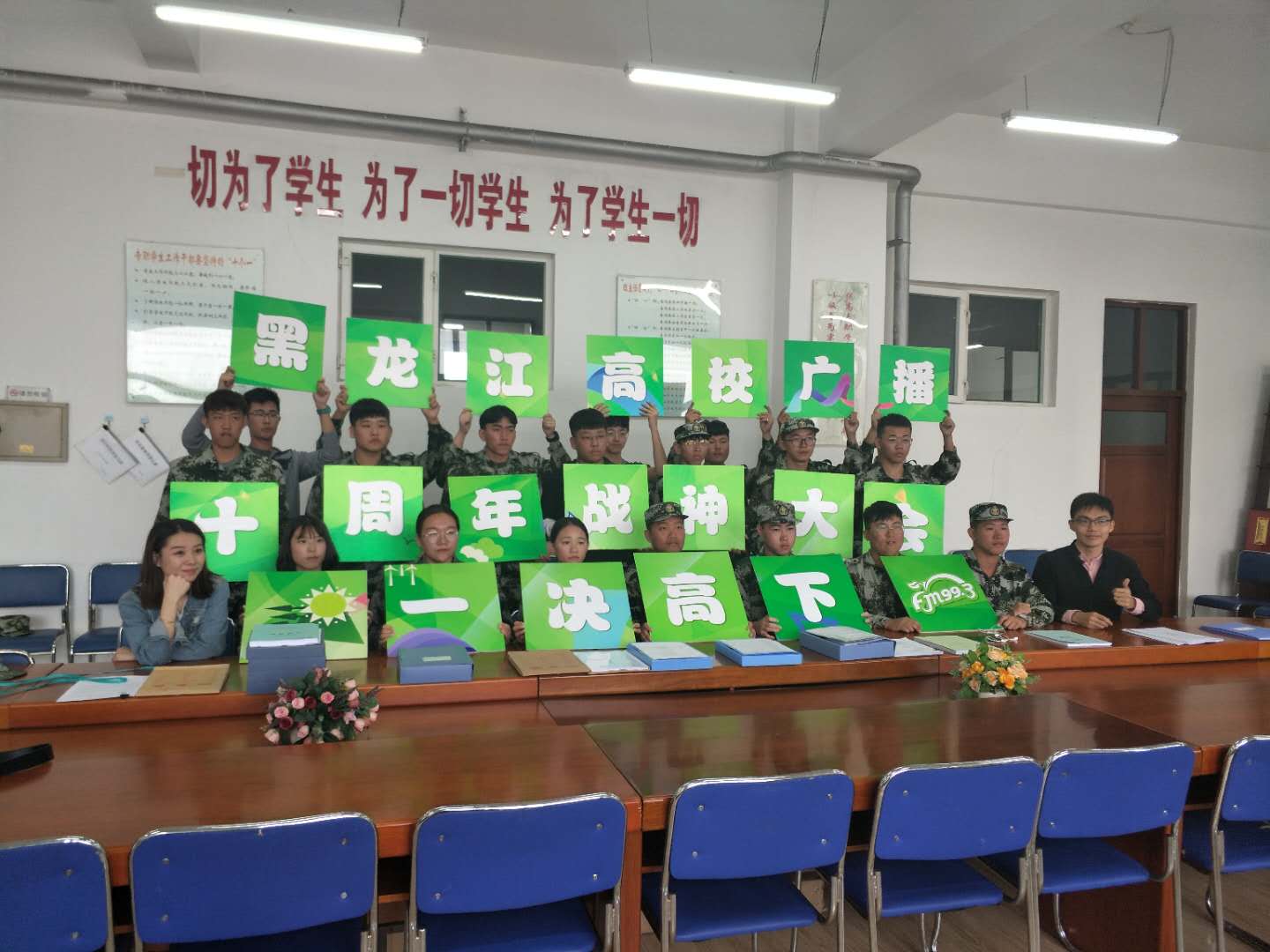 9月12日上午,乐鱼网站_乐鱼(中国)2018级新生军训团安全工程学院46连和各学院分团委选派的20余名新生,代表乐鱼网站_乐鱼(中国)参加了黑龙江高校广播台新声歌会和益智竞赛类活动——战神大会的节目录制。