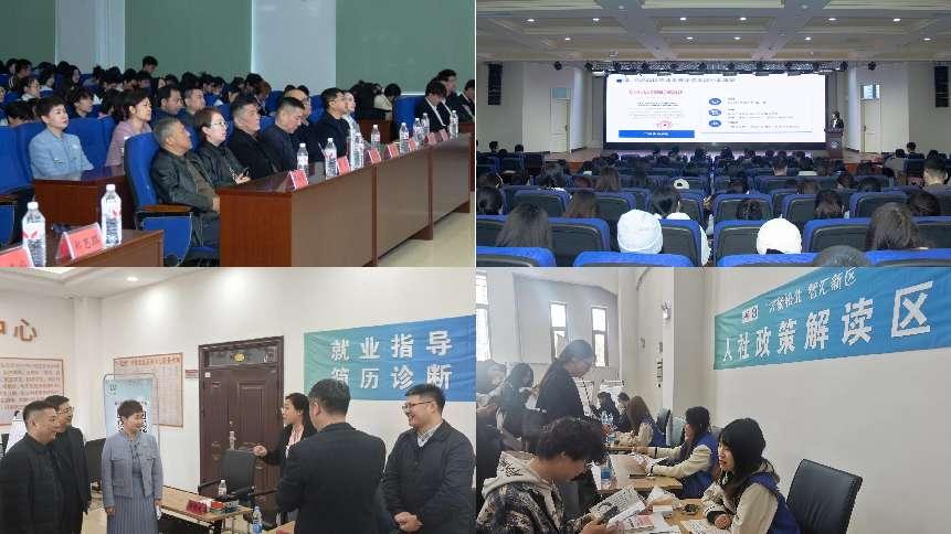 活动伊始,政校企三方举行了务实高效的哈尔滨市及新区人才政策宣讲会。哈市松北区民政和人力资源社会保障局局长刘斌、松北区人力资源社会保障服务中心主任丁宁、道外区就业服务中心四级调研员董吉滨等人社局领导参加了宣讲会,并与学校招就处及五个学院党政领导深入交流,共商文科人才培养与区域产业需求对接新路径。会上,松北区人力资源社会保障服务中心相关负责人围绕哈尔滨市及新区人才政策、高校毕业生档案转递等方面内容进行了宣讲、解读,鼓励更多优秀学子扎根龙江、干事创业。