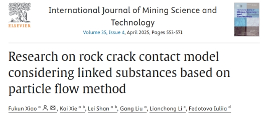 近日,乐鱼网站_乐鱼(中国)肖福坤教授、刘刚副教授,博士研究生谢锴、单磊在对岩石加载变形特征及细观机理的研究中取得重要突破,研究成果以“Research on rock crack contact model considering linked substances based on particle flow method”为题发表于国际矿业工程权威期刊International Journal of Mining Science and Technology(中科院一区TOP期刊,影响因子11.7)。