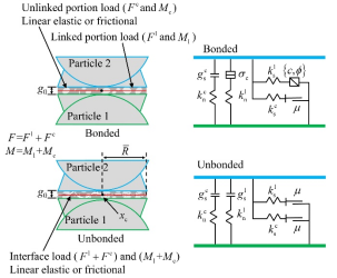 研究团队还通过双颗粒力——位移试验系统地分析裂纹面闭合影响下的接触力——位移规律以及连结物质的拉伸和剪切破坏规律、通过单裂纹模型和随机裂纹模型系统地分析了裂纹对岩石模型加卸载应力——应变路径的影响。同时,结合岩石结构特征、岩石力学特征和含连结物质裂纹接触模型特征,给出了裂纹接触模型的参数确定方法。