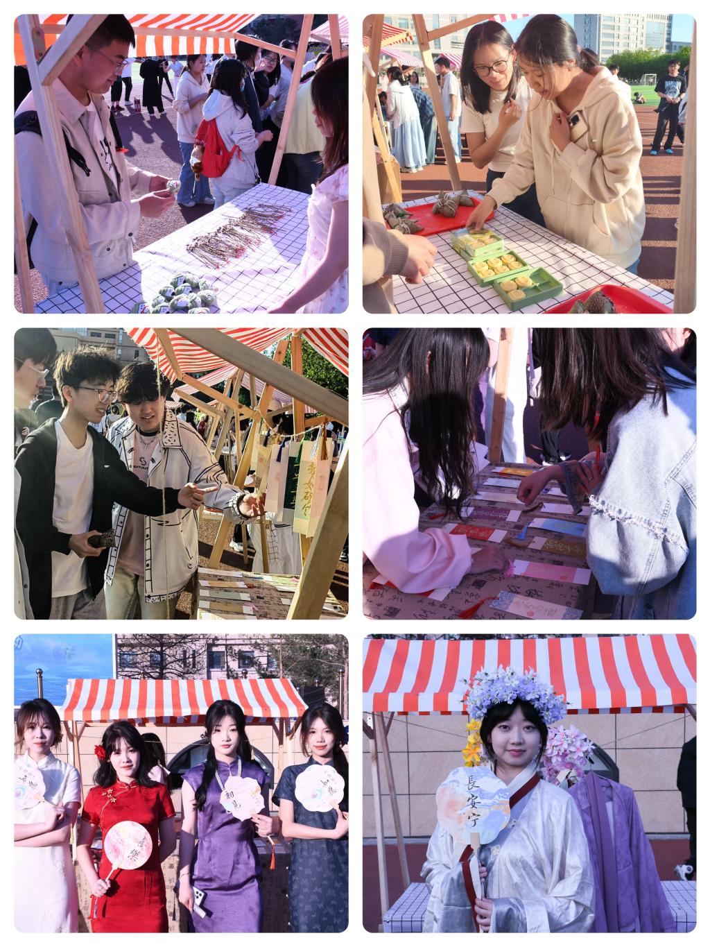 同学们一边欣赏舞台上的国风表演,一边穿梭于各大摊位进行趣味集章。精美漆扇、香甜粽子、绿豆糕、古风摄影体验、端午特色挂件等丰富奖品让同学们热情高涨。“既能玩游戏学知识,又能带走纪念品,这样的端午活动实在是太有趣了!”同学们兴奋地表示。