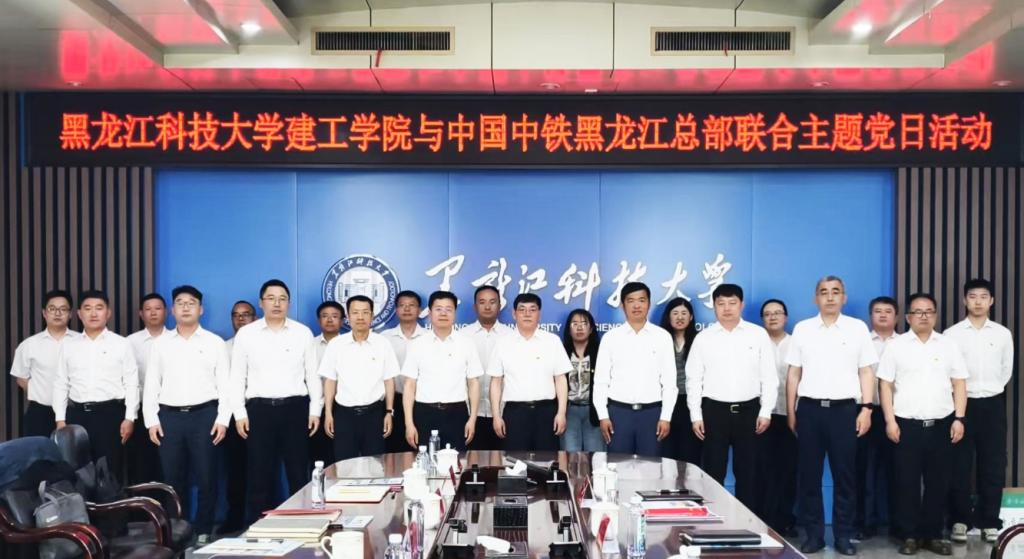 5月29日上午,乐鱼网站_乐鱼(中国)建筑工程学院党委与中国中铁黑龙江总部在乐鱼网站_乐鱼(中国)联合开展“共建联学强思想 校企融合促实践”主题党日活动。活动深入学习习近平总书记考察黑龙江重要讲话精神和中央八项规定精神,通过理论学习、交流研讨、实践观摩等形式,推动校企党建与业务深度融合,共谋助力龙江振兴发展。学校副校长赵振民、中国中铁黑龙江总部总经理杜江及双方党员代表40余人参加活动。活动由建筑工程学院党委书记高宝全主持。