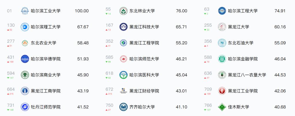2024年度黑龙江省普通高校大学生竞赛院校指数