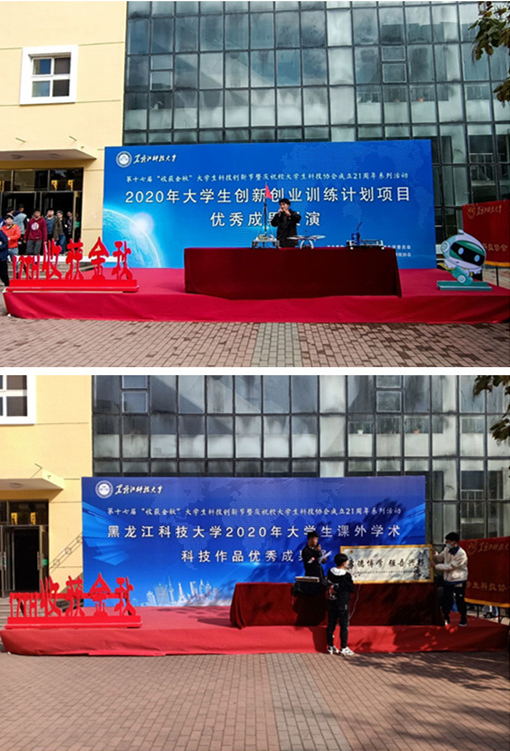 本次大学生创新创业优秀成果展演活动分别由2020年大学生创新创业训练计划项目优秀成果展演和2020年大学生课外学术科技作品优秀成果展两部分组成。大学生创新创业训练计划项目优秀成果展演于10月3日-9日举行,共集中了16个学院26件大学生创新创业训练计划项目优秀成果,作品涉猎创新训练、创业训练、创业实践三大类项目,涵盖了计算机科学与技术、机械工程、通信与电子等10余个学科领域,涉及大学生课外学术科技作品、学术论文、调研报告等多项优秀成果。大学生课外学术科技作品优秀成果展于10月9日-13日举行,共集中了来自全校的42件优秀大学生课外学术科技作品,大量与绿色环保、新兴能源、无人驾驶、软件开发等和龙江经济社会发展方向密切相关的作品亮相,体现了较强的时效性和创新性。