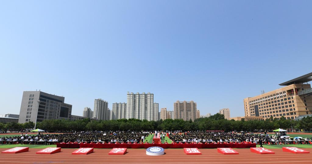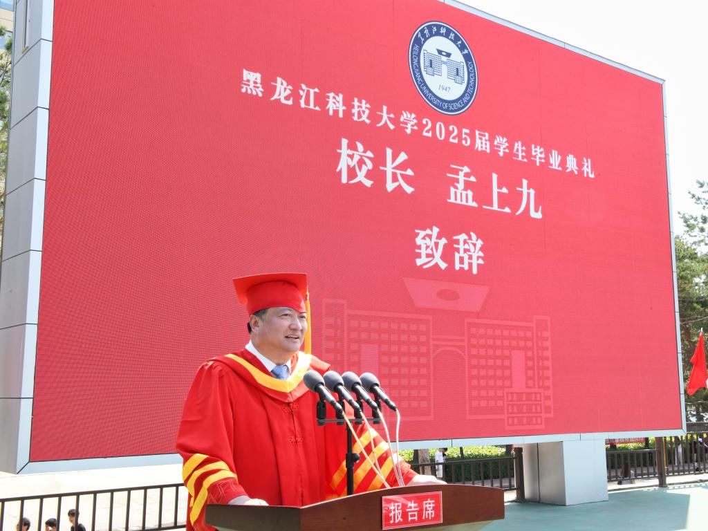 典礼上,校长孟上九作了精彩致辞。他代表全校师生员工向圆满完成学业的毕业生致以最热烈的祝贺。他分享了校友的成功故事并强调,收获幸福重要,感受幸福更重要。要更好感受幸福,格局不能太小。欣赏毕业晚会、在校园里漫步拍照、举行隆重而热烈的毕业典礼都是毕业生离校一份幸福,这份幸福看似轻飘飘,实则沉甸甸,值得好好品味,这背后没有强大的祖国,哪来的云淡风轻和岁月静好。要更好感受幸福,不要过度焦虑。一帆风顺只是愿景,挫折和磨难才是必修课,只有经历才能成才,活在当下才能感受幸福,个人如此,学校也是如此,只要我们找准定位、办出特色,就有自己发展的空间和舞台。要更好感受幸福,先从爱惜自己身体开始。走上社会,打拼虽然重要,但首要是别让自己身体受委屈,学校努力做到把体育育人和环境育人放在突出位置,尽可能呵护学生身心健康!他寄语全体毕业生,要牢记习近平总书记对全国广大青年提出的殷切期望,为中国式现代化建设贡献青春力量!希望同学们以青春之名奔赴山海,书写精彩,感受幸福!