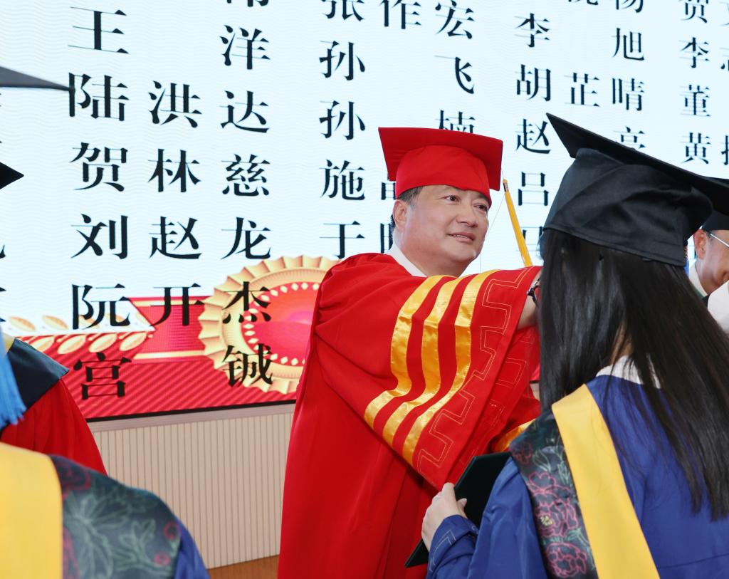 毕业典礼后,举行了学位授予仪式,校领导和校学位委员会委员为2025届硕士、学士毕业生拨穗正冠、颁发学位证书。