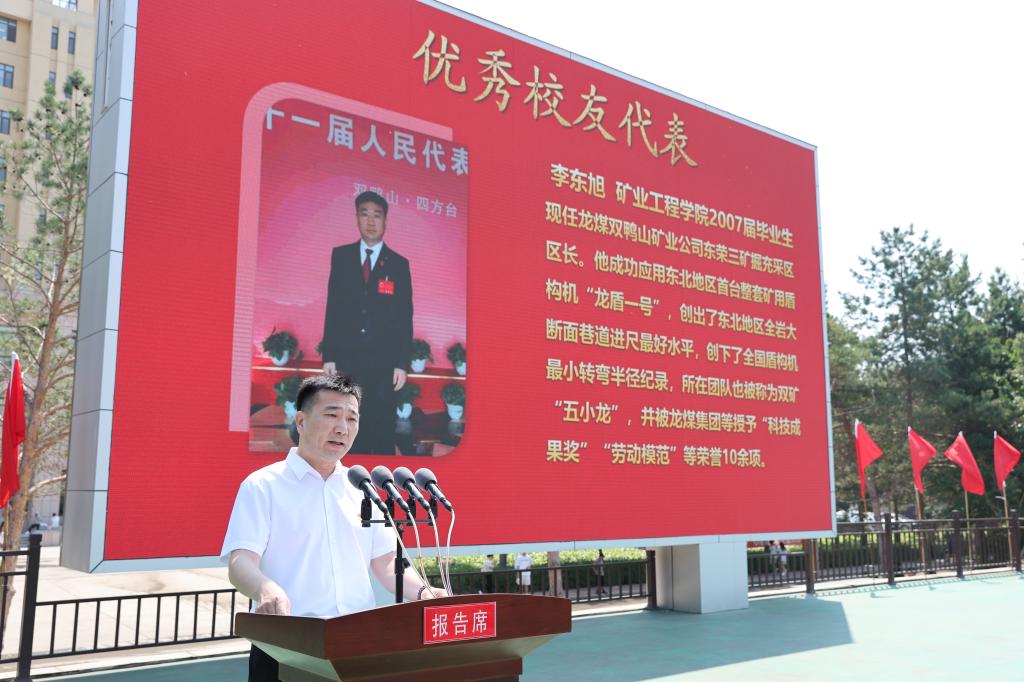 优秀校友代表矿业工程学院采矿工程专业2007届本科毕业生李东旭,从基层技术员成长为“龙盾一号”研发带头人,用自身拼搏历程鼓励学子们坚持终身学习、诚信感恩、专注实践。