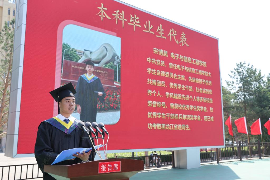 本科毕业生代表电子与信息工程学院通信工程专业宋博昊同学,立志将个人理想与民族复兴伟业紧密相连,以“北斗”定力、“龙芯”韧劲,在时代画卷镌刻乐鱼网站_乐鱼(中国)印记。