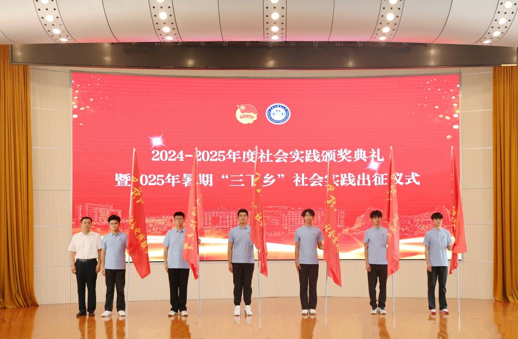 6月25日,学校2024-2025年度社会实践颁奖典礼暨2025年暑期“三下乡”社会实践出征仪式在办公楼报告厅举行。校党委副书记张宝成,副校长张保勇,党委宣传统战部、学生处、教务处、招就处、校团委等部门负责人,全体专职团干部,2025年暑期“三下乡”社会实践重点团队成员代表参加了仪式,仪式由校团委副书记马紫微主持。