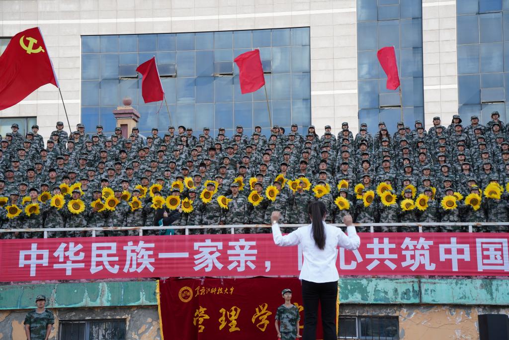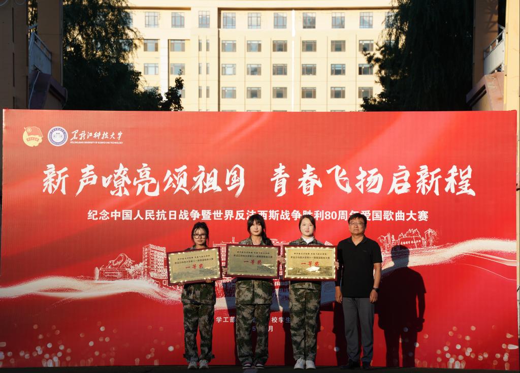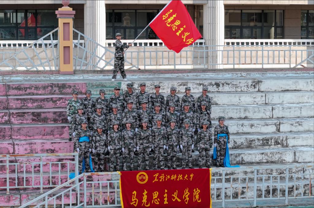 在比赛中,来自全校各学院的15支参赛队伍依次演唱,用激昂嘹亮、饱含深情的歌声,唱响了爱党爱国爱军的时代强音。比赛现场,既有《没有共产党就没有新中国》《人民军队忠于党》《四渡赤水出奇兵》等承载厚重历史的经典红歌,唤起了师生对峥嵘岁月的无限追忆;也有《祖国不会忘记》《强军战歌》《中国军魂》等充满时代气息的新时代爱国曲目,展现了人民军队的威武雄壮和新时代青年报效祖国的壮志豪情。一首首耳熟能详的旋律回荡在田径场上空,青年学子们以歌抒怀,用最真挚的情感表达对革命先烈的崇高敬意和对伟大祖国的无限热爱,生动勾勒出新时代青年昂扬向上、奋发有为的精神风貌。当校歌《江畔朝阳》的熟悉旋律响起,全体新生共同合唱、声震校园,为本次爱国歌曲合唱比赛画上了圆满句号。