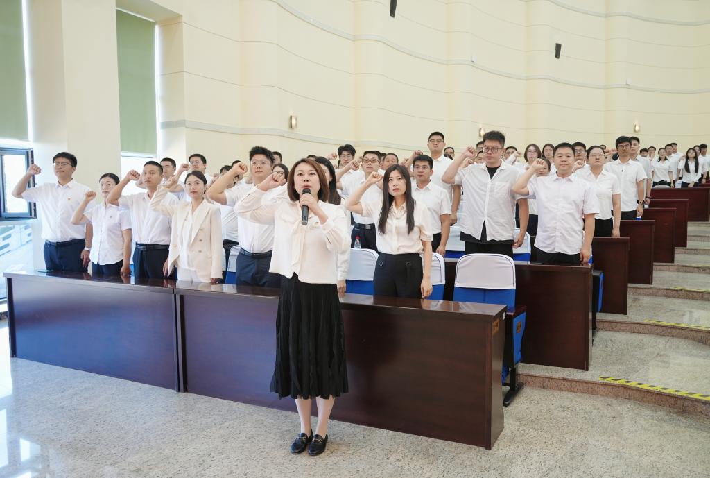 会议举行了新入职教师宣誓仪式。在省师德先进个人、环化学院教师刘丽来的领誓下,全体新入职教师高举右手进行庄严宣誓,表达了每一位新教师的自我期许和对教育事业的庄严承诺,彰显了他们为党的教育事业奋斗终身的坚定决心。
