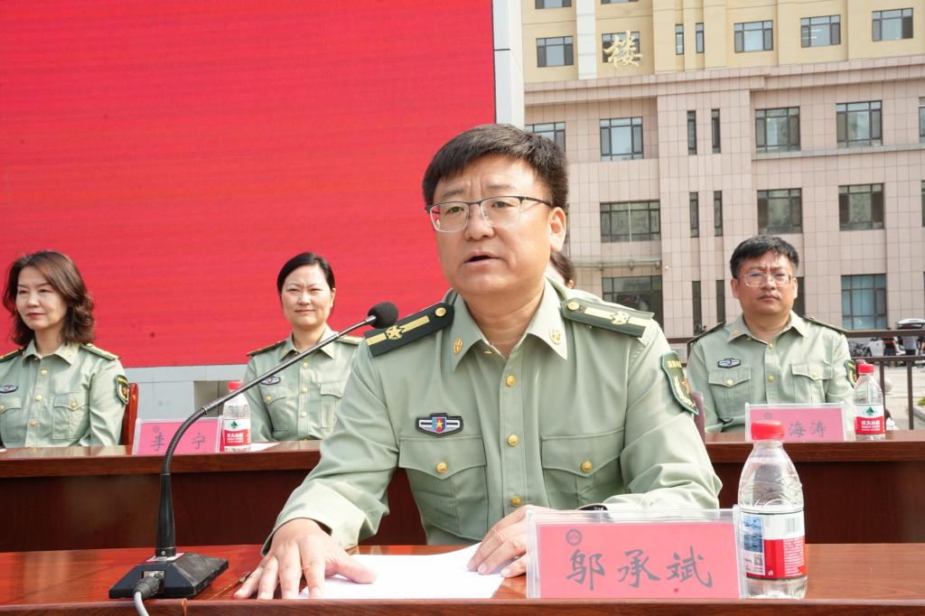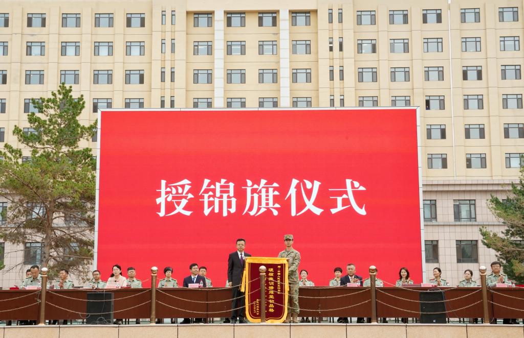 校党委书记周宏力代表学校向承训单位赠授锦旗。