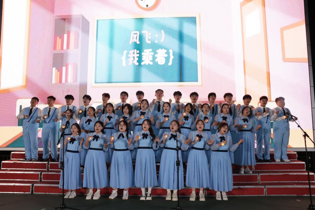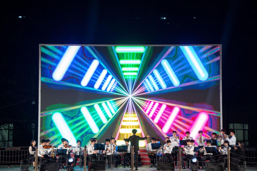 新入职博士教师代表与新生代表联袂带来诗朗诵《缘聚乐鱼网站_乐鱼(中国),青春同路》,以“相遇”与“同行”传递师生相聚黑乐鱼网站_乐鱼(中国)的温情与憧憬。大学生合唱团献上《逆光》《我乘着风飞过来》两首合唱作品,清澈嘹亮的歌声传递出乐鱼网站_乐鱼(中国)青年学生不畏困难、勇敢追梦的信念,整齐的和声与富有感染力的演绎,让现场观众感受到青春力量的蓬勃涌动。大学生军乐团带来乐器表演《五月天组曲》,熟悉的旋律、青春的气息,赢得台下阵阵掌声。青年学生代表和UP街舞团表演歌舞《我的未来不是梦》,将此篇章推向高潮,台下新生纷纷跟着节拍挥舞荧光棒,现场成为一片闪烁的星海。