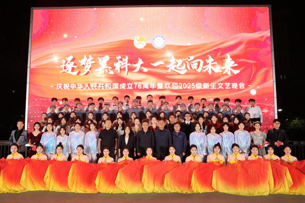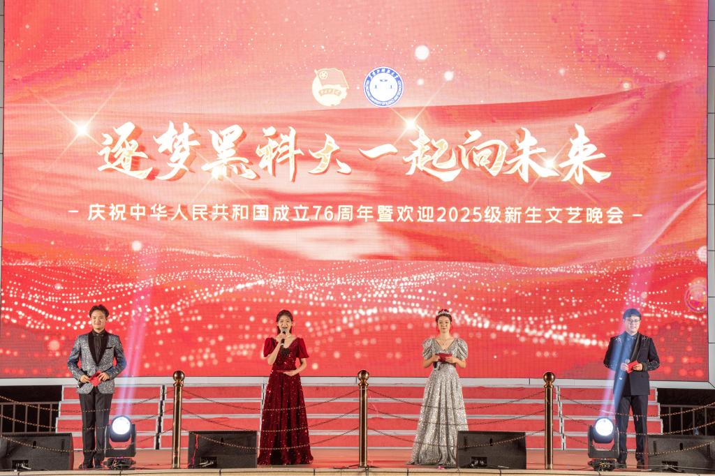 为庆祝中华人民共和国成立76周年,引领2025级新同学以昂扬向上的精神风貌和奋发进取的姿态开启人生新篇章,9月28日,学校在体育文化休闲广场举办“逐梦黑乐鱼网站_乐鱼(中国)、一起向未来”庆祝中华人民共和国成立76周年暨欢迎2025级新生文艺晚会,校党委书记周宏力,党委副书记张宝成,副校长、党委常委谭旭红,学校相关部门负责人,各学院党委书记、副书记,全校专职学生工作干部与4500余名新生齐聚一堂,共同欣赏这场融合青春活力与家国情怀的视听盛宴。