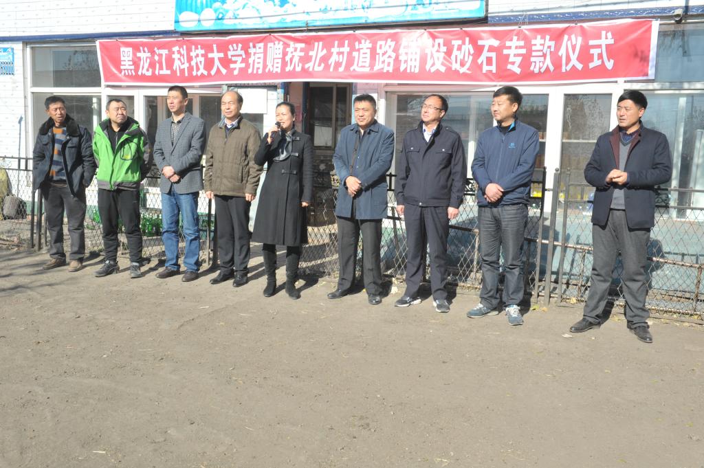 在我国第4个扶贫日到来之际,校党委副书记陈桂芝,党委常委、组织部部长陈玉平,组织部副部长兼驻村扶贫工作联络员吕刚等一行来到学校定点帮扶村——抚北村,代表学校为抚北村捐赠道路铺设砂石专款。