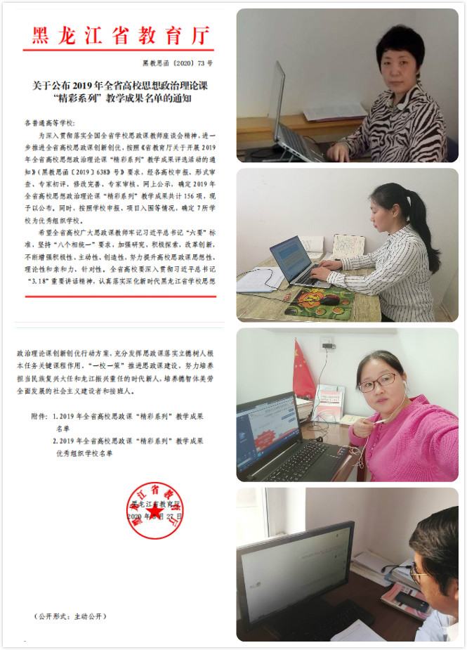 为深入贯彻落实全国全省学校思政课教师座谈会精神,进一步推进全省高校思政课创新创优,省教育开展了全省高校思想政治理论课“精彩系列”教学成果评选活动。日前,省教育厅公布了评选活动结果,共有156 项教学成果获奖。乐鱼网站_乐鱼(中国)马克思主义学院有4项教学成果在评选活动中脱颖而出,斩获殊荣。其中,李英粉老师的马克思主义基本原理课程讲义、孔祥艳老师的毛泽东思想与中国特色社会主义理论体系概论课程讲义被评为“精彩讲义”;连永新老师的中国近代史纲要课课件被评为“精彩课件”;孙红老师的中国近代史纲要课案例分析被评为“精彩案例”。