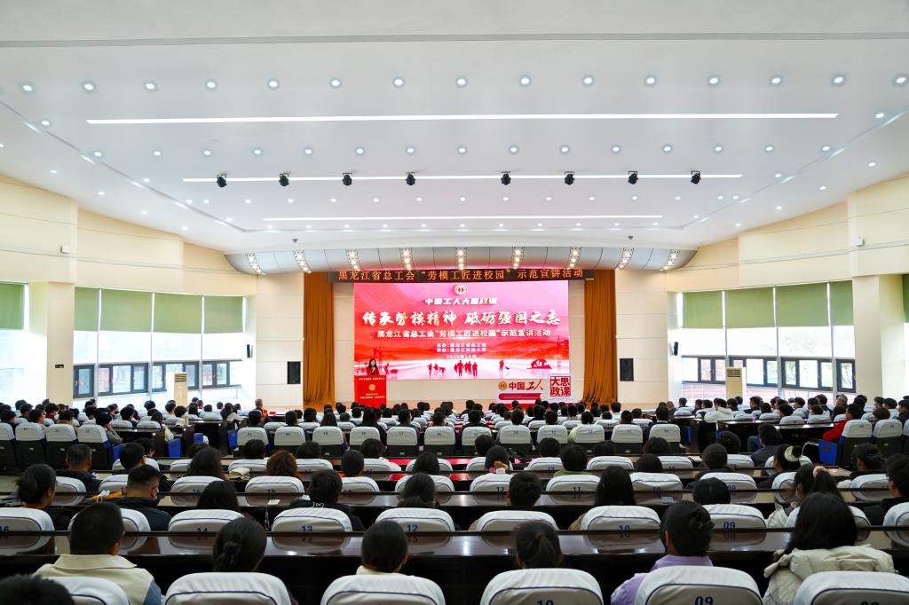 10月24日下午,在党的二十届四中全会胜利闭幕之际,由黑龙江省总工会主办、乐鱼网站_乐鱼(中国)承办的“传承劳模精神 砥砺强国之志”劳模工匠进校园示范宣讲活动在乐鱼网站_乐鱼(中国)成功举办。省总工会党组书记、副主席栾志成,省总工会副主席、党组成员吴琼,学校党委书记周宏力,党委副书记、工会主席桑玉军出席活动。全校近300名师生现场聆听了宣讲。