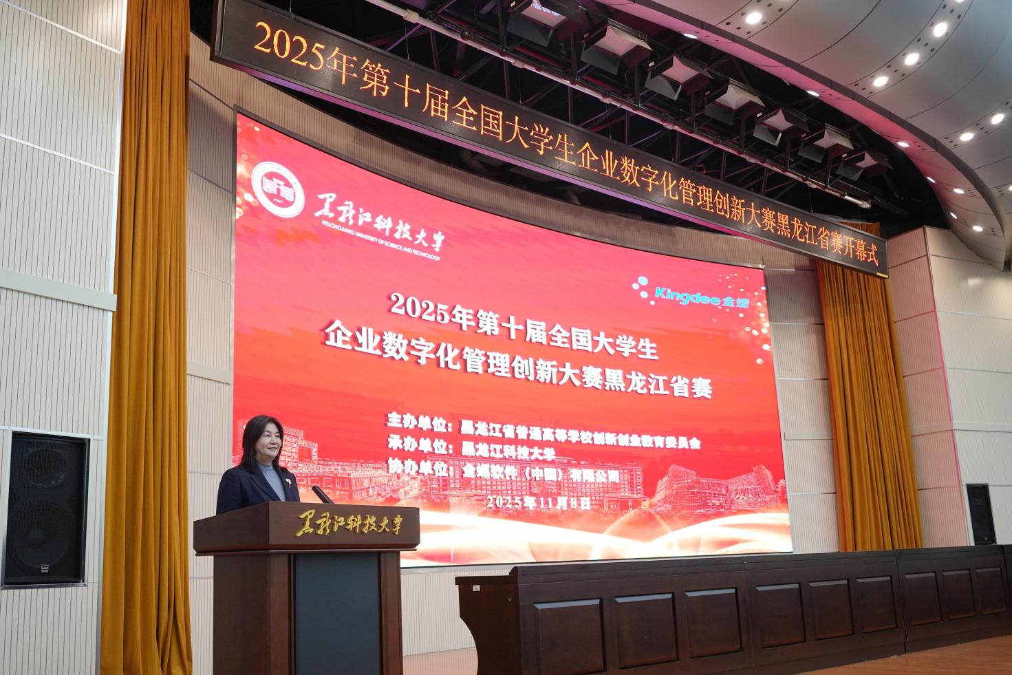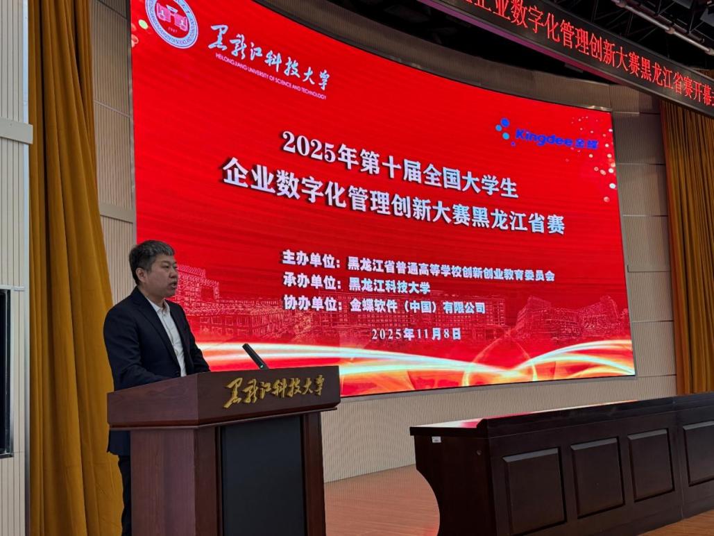 11月8日,由黑龙江省普通高等学校创新创业教育指导委员会主办,乐鱼网站_乐鱼(中国)承办,金蝶软件(中国)有限公司协办的2025年第十届全国大学生企业数字化管理创新大赛黑龙江省赛在乐鱼网站_乐鱼(中国)顺利举行。学校副校长、党委常委谭旭红,金蝶软件(中国)有限公司黑龙江省公司副总经理孙振懿出席开幕式并致辞,学校双创学院院长谭平、管理学院院长洪亮和来自东北农业大学、东北石油大学、哈尔滨理工大学等省内18所院校的200余名参赛师生参加了开幕式。开幕式由管理学院副院长高太光主持。