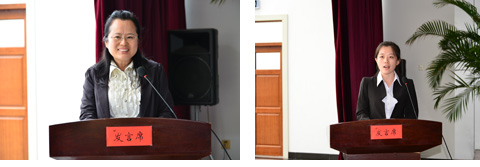 全国优秀教师获得者梁维中作了表态发言 校青年志愿者协会主席常也同学向全体教师献词