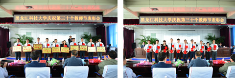 最后,党委书记宋有站在学校发展新目标、新机遇的新高度作了重要讲话。宋书记首先代表学校党政向全体教师及退休教师送上亲切的节日问候,向受到表彰的先进集体和先进个人表示热烈的祝贺,并系统总结了近年来特别是过去一年学校取得的成绩,科学分析了学校当前面临的新形势、新任务。他强调,要认真学习领会和全面贯彻落实好习近平总书记和省委王宪魁书记的重要讲话精神,按“好老师”的要求加强教师队伍建设,切实营造教师创新有机会、干事有舞台、发展有空间的良好氛围。要在促进教师专业发展、关心教师身心健康等方面办实事、做好事、解难事,把尊师重教的具体措施落实到学校各项工作之中。广大教师要牢固树立中国特色社会主义理想信念,带头践行社会主义核心价值观,自觉增强立德树人、教书育人的荣誉感和责任感,学为人师、行为示范,做学生健康成长的指导者和引路人;要牢固树立终身学习理念,加强学习,拓宽视野,更新知识,不断提高业务能力和教育教学质量,努力成为业务精湛、学生喜爱的高素质教师。