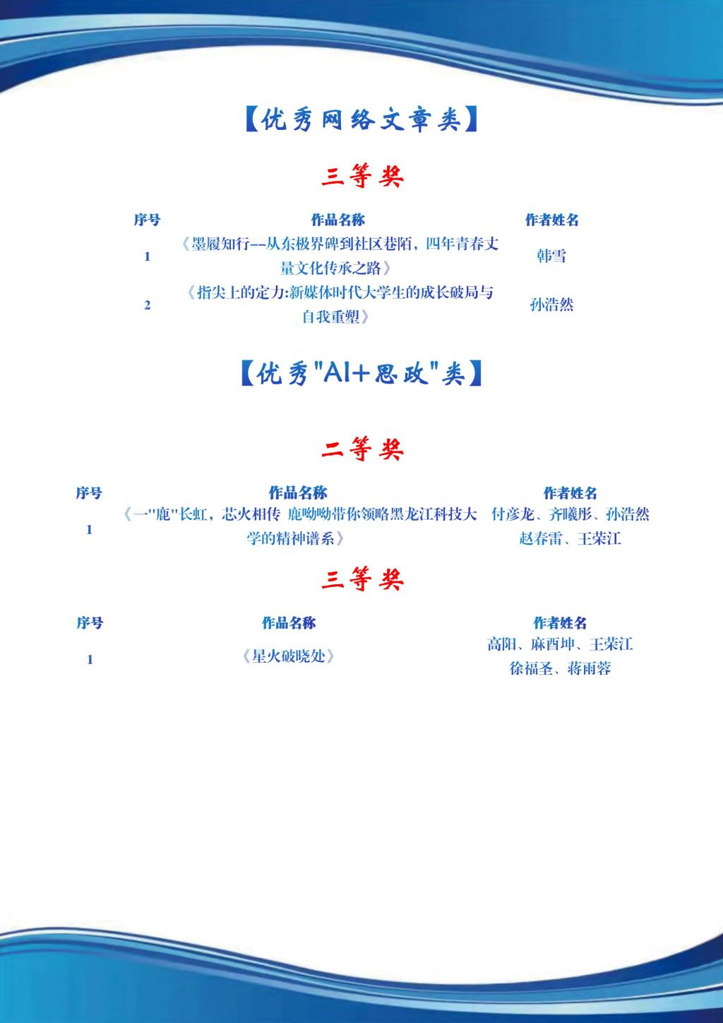 获奖名单