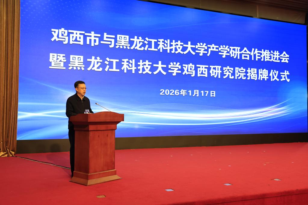 仪式上,孙成坤代表鸡西市委、市政府对研究院的成立表示热烈祝贺,向长期以来关心支持鸡西发展的各位校领导、专家教授表示衷心感谢。他说,当前,鸡西正认真学习贯彻习近平总书记重要讲话和党的二十届四中全会精神,深入落实省委全会部署,以科技创新引领发展新质生产力,全力推动“能源转型、产业升级、多元发展”,加快构建更具竞争力的现代化产业体系,比以往任何时候都更需要强大的科技支撑和人才保障。希望以此次合作为新起点,聚焦产业所需,开展“揭榜挂帅”定向研发,推动“部门问需—企业出题—研究院答题”协同攻关,共建核心技术攻关的“助推器”。创新融合机制,共同探索完善科技成果转化和科技资源开放机制,畅通“技术研发—中试熟化—市场验证—产业融资”等环节,共建科技成果转化的“加速器”。突出平台赋能,建设研究生培养基地、实习实训基地,构建“政校企”联动的人才培养新体系,共建专业人才引育的“孵化器”。鸡西将全力以赴支持创新平台建设,打造市校合作“样板典范”,为现代化龙江建设贡献更大的力量。