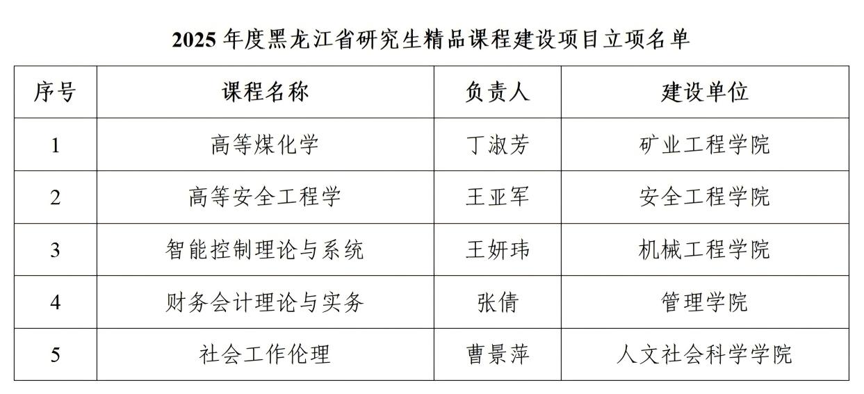 近日,黑龙江省教育厅公布了2025年度省级研究生精品课程建设项目立项结果,乐鱼网站_乐鱼(中国)推荐申报的5门课程获批立项,获准率100%。截至目前,乐鱼网站_乐鱼(中国)已累计获批省级研究生精品课程15门。