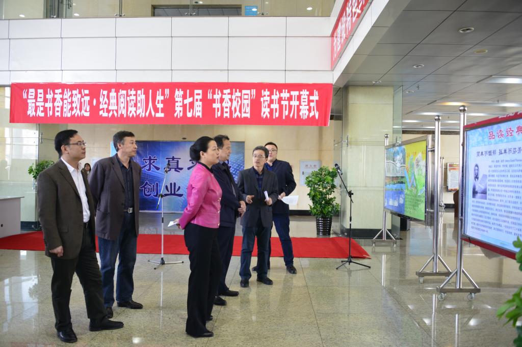 在开幕式上,校党委副书记陈桂芝宣布了本届读书节开幕,图书馆馆长苏显义宣读了第七届“书香校园”读书节活动方案,校团委书记薛立刚宣读了第七届“书香校园”读书节倡议书。开幕式结束后,与会的领导、老师和同学们一起参观了由图书馆馆员精心布置的《瓦尔登湖》宣传展和历届“文津图书展”获奖图书展。