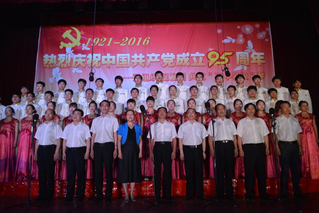 学校领导与全场师生员工共同演唱《没有共产党就没有新中国》