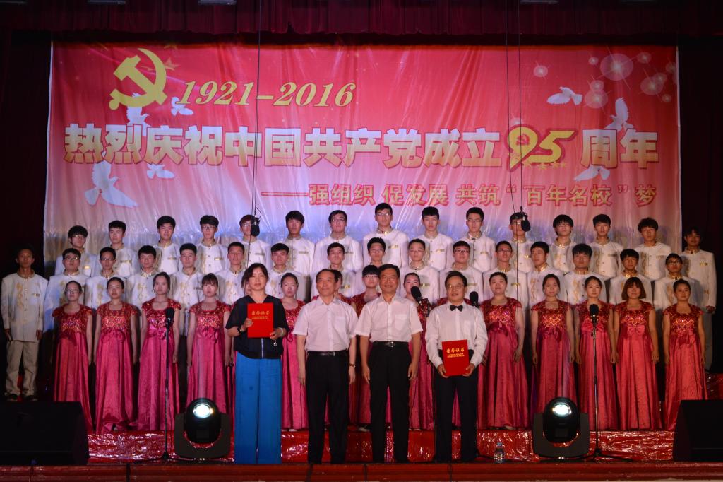 本次比赛以“强组织、促发展、共筑‘名校梦’”为主题,共有8支队伍进入决赛。灯光下,师生们身着节日的盛装,用饱满的激情和嘹亮的歌声,唱响了《保卫黄河》《旗帜颂》《我的祖国》《党啊,亲爱的妈妈》《弹起我心爱的土琵琶》《共筑中国梦》《祝福祖国》《没有共产党就没有新中国》等一首首经典的革命歌曲和讴歌新时代的优秀作品,唱出了对中国共产党和祖国的热爱,表达了共筑中国梦的坚定信念,展现了昂扬向上的精神风貌。比赛结束后,乐鱼网站_乐鱼(中国)大学生合唱团表演了《龙船调》和《江畔朝阳》校歌。最后,学校领导走上舞台,与全场师生员工共同演唱了《没有共产党就没有新中国》,再次点燃了全场的激情。雄壮的歌声响彻校园内外,共同庆祝党的95周年华诞,祝福伟大的祖国繁荣昌盛。