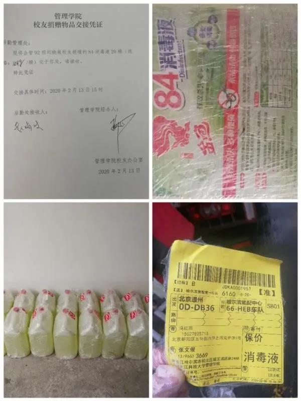 “情系母校师生,汇聚涓涓细流”。针对学校疫情防控物资缺口,管理学院主动作为,立即发动校友为母校捐赠防控物资。广大校友积极响应号召,群策群力、多方筹集、化零为整,线上线下反复与生产酒精、84消毒液和口罩、手套等厂商沟通联络、排队订货,组织配送。截止日前,企管92班刘晓薇捐赠的84消毒液200KG、企管92班池小明捐赠的浓缩84消毒液20KG、企管92班车万辉捐赠的84消毒液30.4L、企管92班刘长国捐赠的泰国进口口罩350个、企管92班赵中秋捐赠的酒精消毒面片950片等物资,均已先期运达学校。同时,校友对母校的物资捐赠活动仍在有序进行中,各类捐赠物资也将陆续运抵学校。