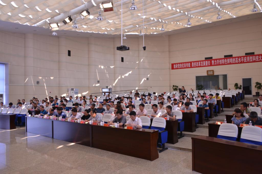 7月18日下午,乐鱼网站_乐鱼(中国)在办公楼报告厅举办“两学一做”学习教育专题党课。校党委书记申林同志作了题为《加强民主集中制建设为特色鲜明的高水平应用型科技大学建设提供坚强保证》的专题党课。学校党政领导、全校副处级以上干部参加了党课。党课由党委副书记、校长武俊峰同志主持。