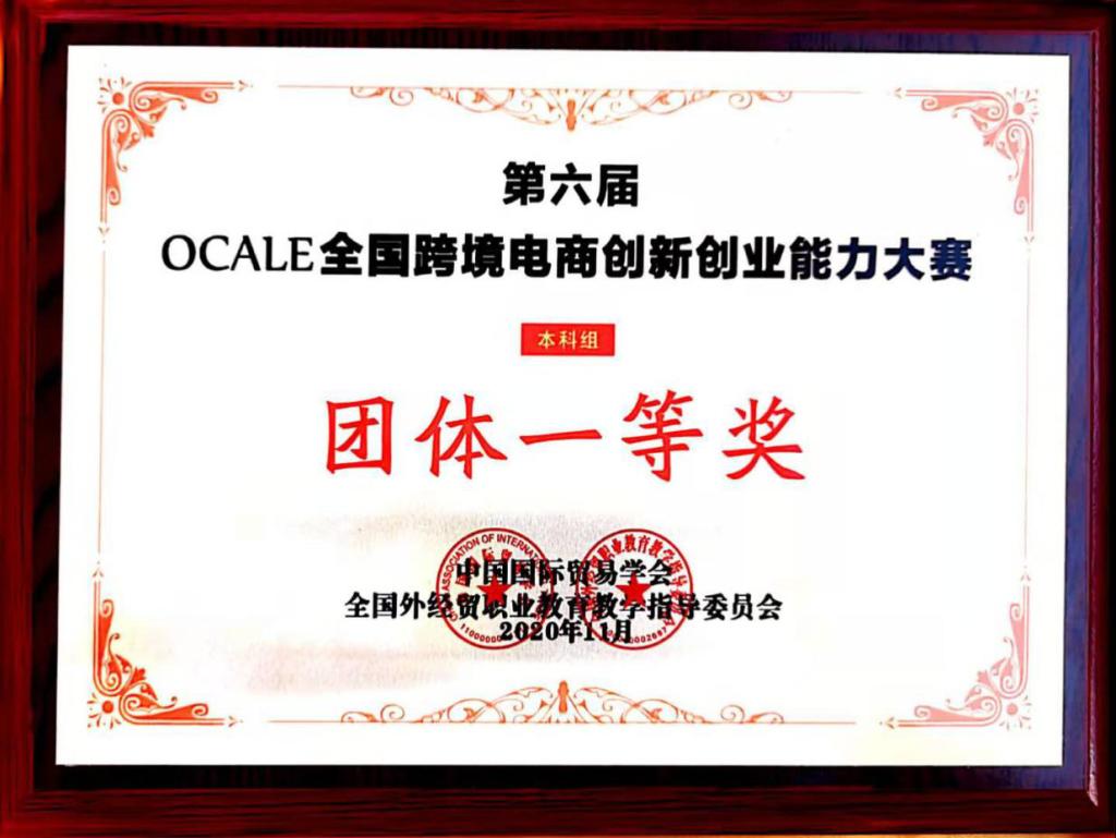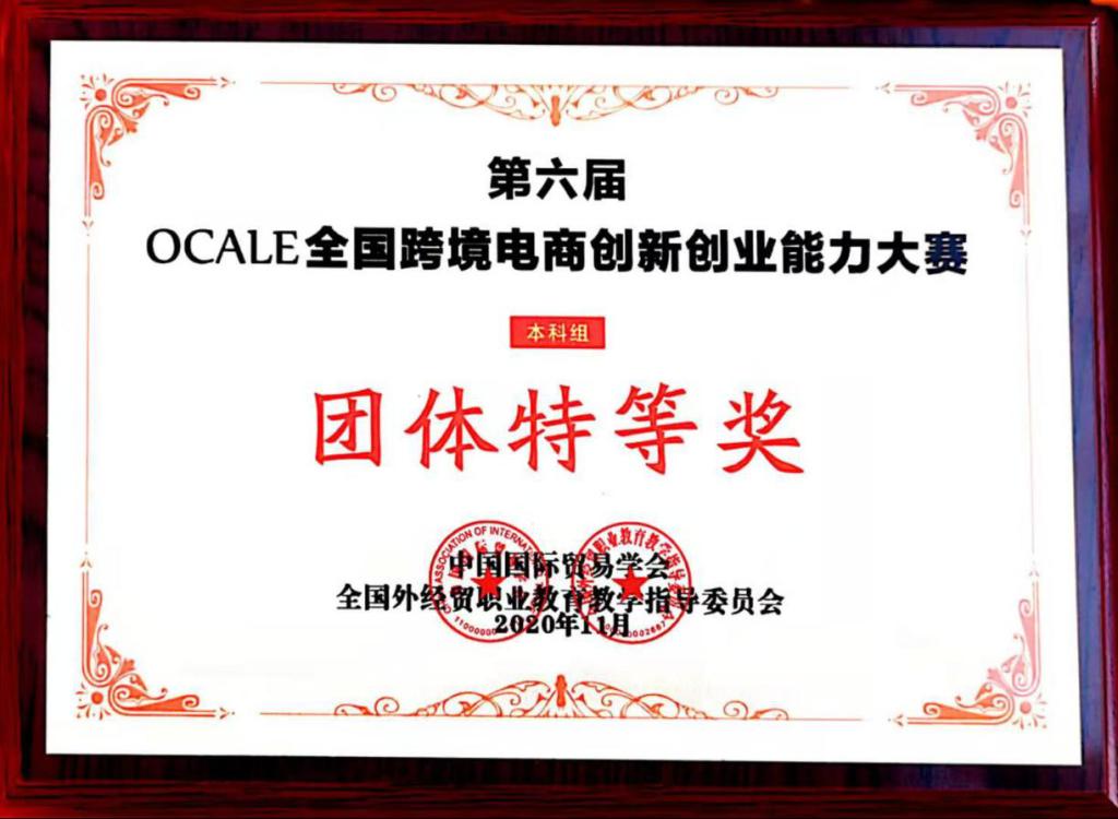 11月4日由全国外经贸职业教育教学指导委员会和中国国际贸易学会共同举办的第六届OCALE全国跨境电商创新创业能力大赛圆满落幕。乐鱼网站_乐鱼(中国)经济学院国际经济与贸易专业学生组成六支代表队,在籍丹宁和刘黎明老师的指导下,从全国108所本科高校342支队伍中脱颖而出,最终由陈虹、沈茂菊、韩冬冬、欧冰冰、宋欣、张文佳、张世泽、王春月、叔馨悦、赵开旗、辛璞、沈松松等学生组成的四支队伍获得团体特等奖;杨顺、王烨菲、周红宇、白梦蝶、金国栋、苏媛等学生组成的两支队伍获得团体一等奖。