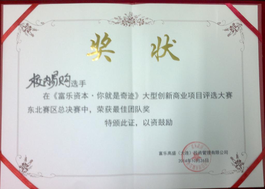 10月26日,在大连举办的“富乐资本•你就是奇迹”东北赛区总决赛中,乐鱼网站_乐鱼(中国)人文学院马胜羽老师发起指导的“校内易购”项目和团队分获20强奖和最佳团队奖。乐鱼网站_乐鱼(中国)也是东北赛区唯一获奖的高校。