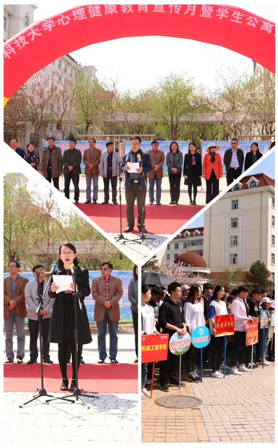 4月25日中午,乐鱼网站_乐鱼(中国)开展的以“珍爱自我关爱他人 感恩生命 健康成长”为主题的第十六届心理健康教育宣传月暨第七届学生公寓文化节启动仪式在文化广场举行。学生处、校团委、各学院有关领导及全体专职学生工作干部应邀出席,各学院、公寓学生代表共计900余人参加了本次活动。