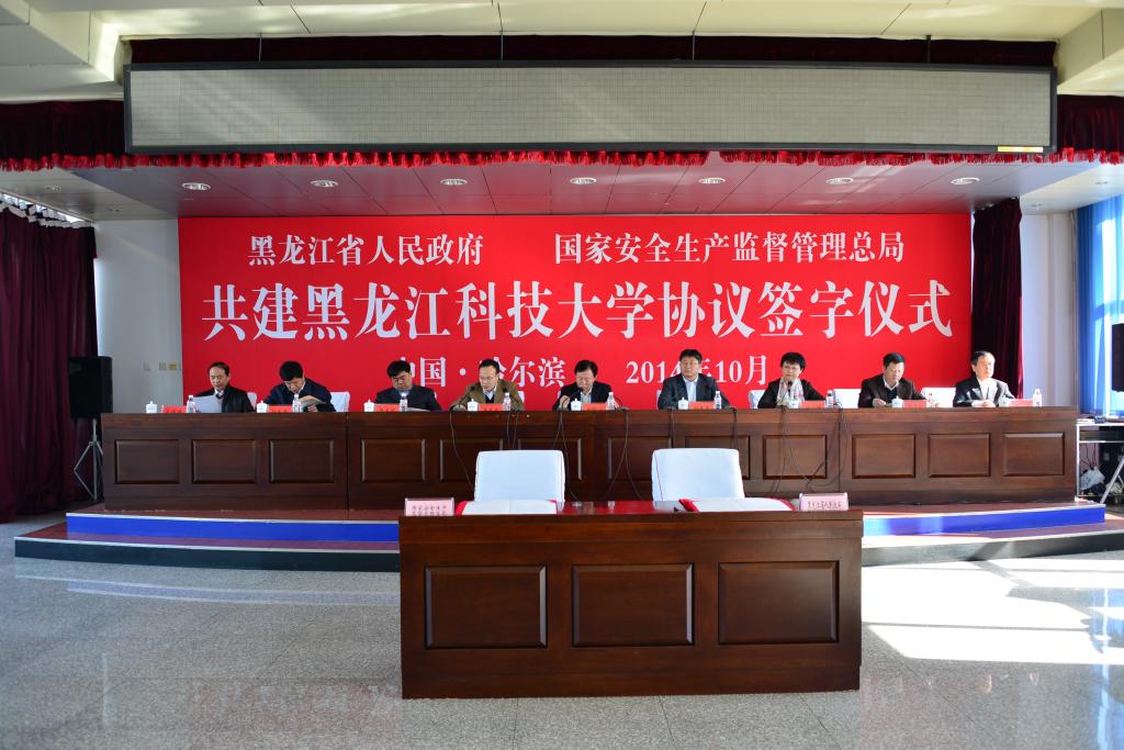 10月16日上午,黑龙江省人民政府与国家安全生产监督管理总局共建乐鱼网站_乐鱼(中国)协议签字仪式在乐鱼网站_乐鱼(中国)隆重举行。国家安全生产监督管理总局副局长徐绍川,黑龙江省人民政府副省长孙东生,国家安全生产监督管理总局人事司副司长李生盛,黑龙江省委高校工委书记、教育厅厅长徐梅,黑龙江省安全生产监督管理局局长杨宝田,黑龙江煤矿安全监察局局长常天明,黑龙江龙煤矿业控股集团有限责任公司副董事长、总经理孙永奎,乐鱼网站_乐鱼(中国)党委书记宋有,校长武俊峰等领导出席签字仪式并在主席台就座。乐鱼网站_乐鱼(中国)党政班子成员、基层单位党政负责人、师生代表参加了签字仪式,共同见证了这一激动人心、难以忘怀的历史时刻。