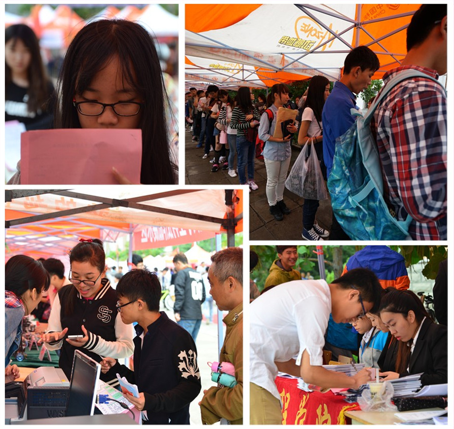 校园被妆点得分外美丽,喜庆和谐。彩虹门上书写着“热烈欢迎2015级新同学”,校园主干道高挂着红色迎新横幅,缤纷的彩旗和整齐划一的帐篷,使迎新现场变得既有声有色又井然有序。